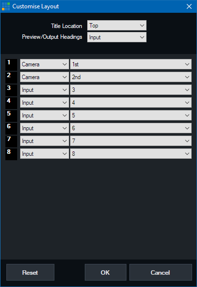 Click Customise Layout to change the order inputs appear in the MultiView monitor.