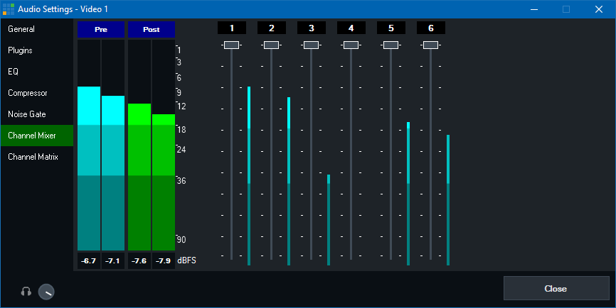 The channel mixer can be used to set the volume level of individual channels.