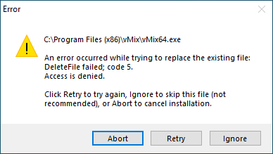 Error when Installing or Updating vMix