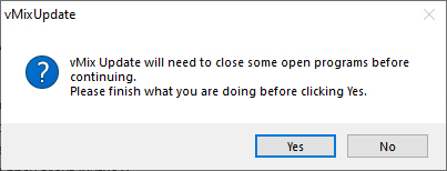 When you install vMix or run the vMix Update Tool, during the installation process it will ask you to confirm closing some programs so that vMix can complete the installation.