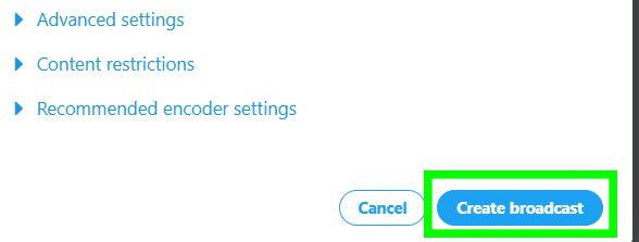 Now you can create a broadcast. Click Create Broadcast.